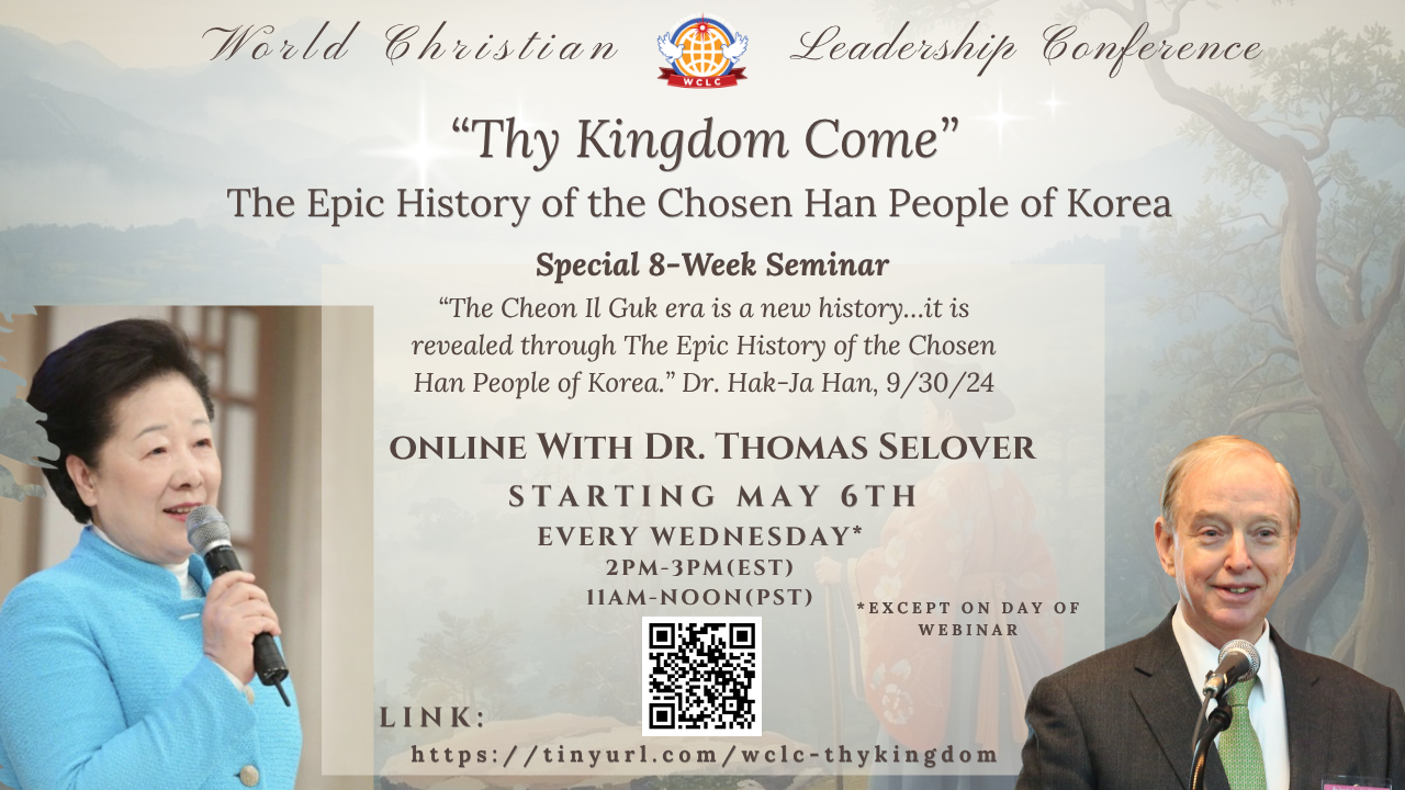 We are beginning a new seminar series called “Thy Kingdom Come: The Epic History of the Chosen Han People of Korea” on Wednesday, May 6, 2026 at 2 PM EST / 11 AM PST